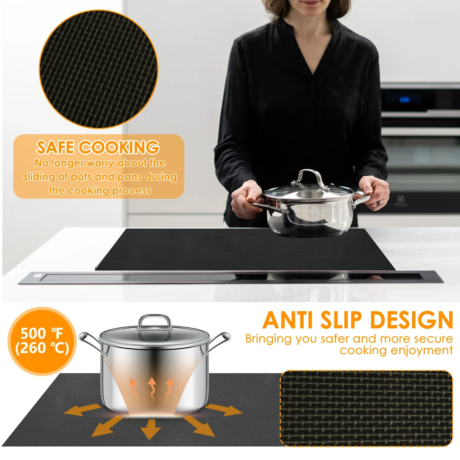 Nonslip Design: This mat is nonslip and nonstick, suitable for induction cooker. It can also be used as a microwave pad and oven baking pad.