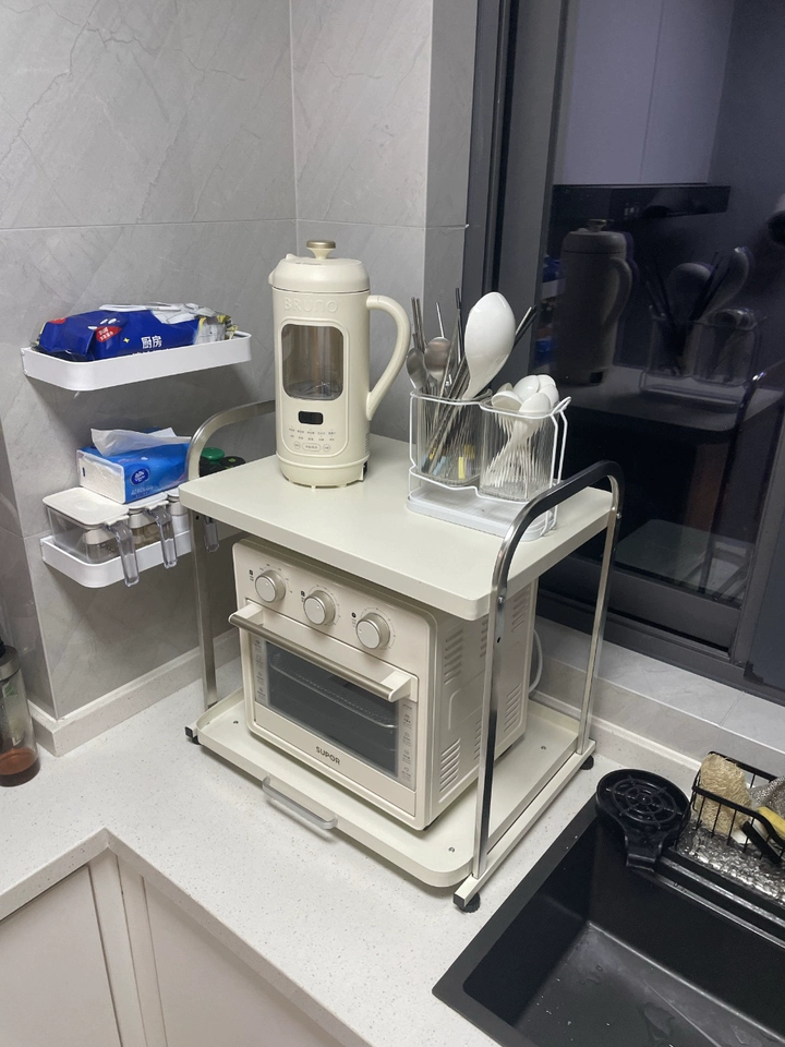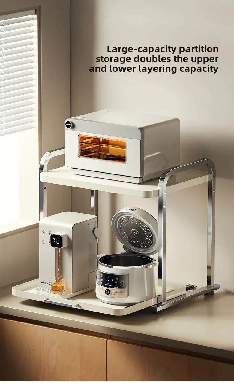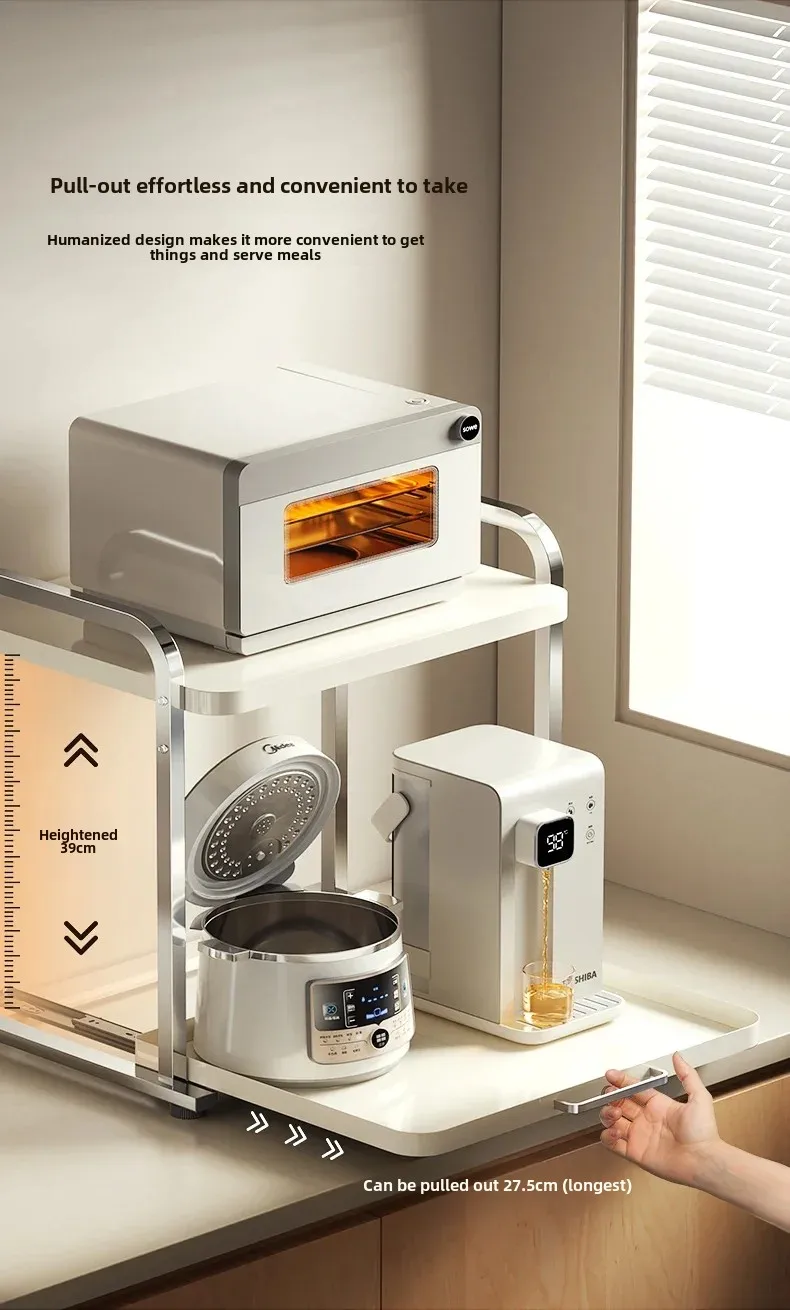 2 Layers Pull-out Microwave Oven Kitchen Shelf Free Standing Spice Storage Rack Electrical Appliances Storage Shelves Oven Rack